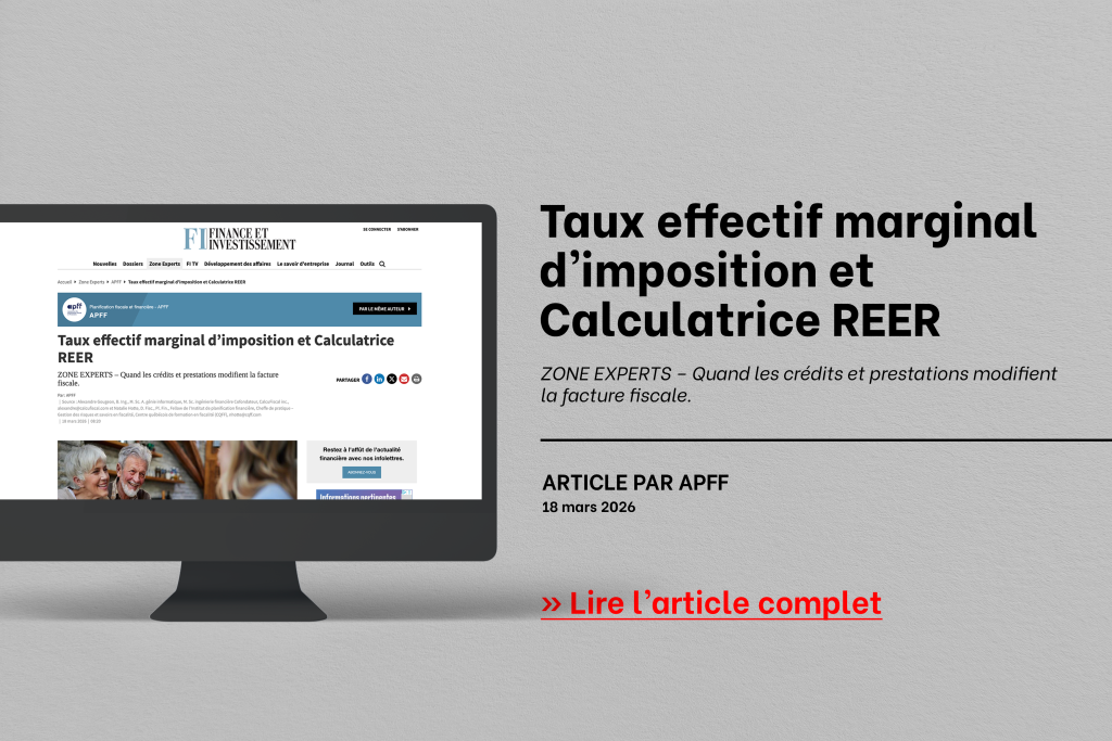 Quand un client te pose la “vraie” question (REER vs CELI? REER conjoints? L’impact d’une prime au travail ou avantage imposable? impact sur PSV?), tu sais qu’il te faut des chiffres pour baser tes calculs.